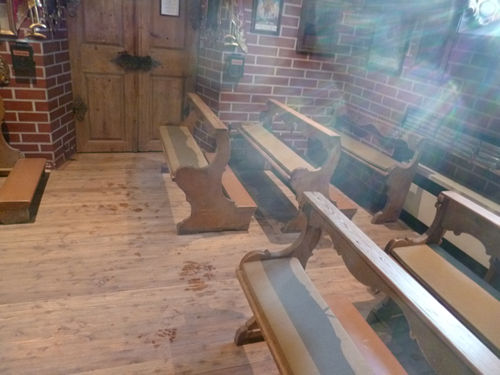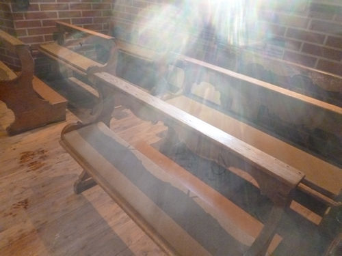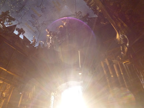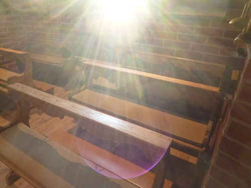 Bilder in der Kapelle in Richtung Westfenster, gegen die Sonne. All diese