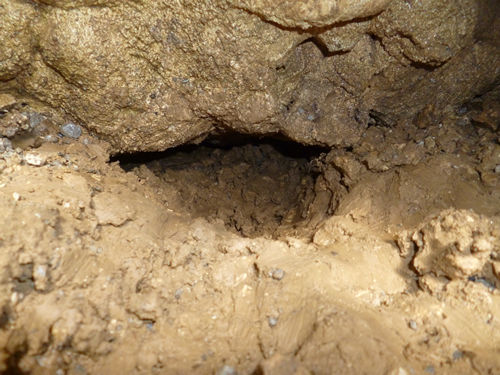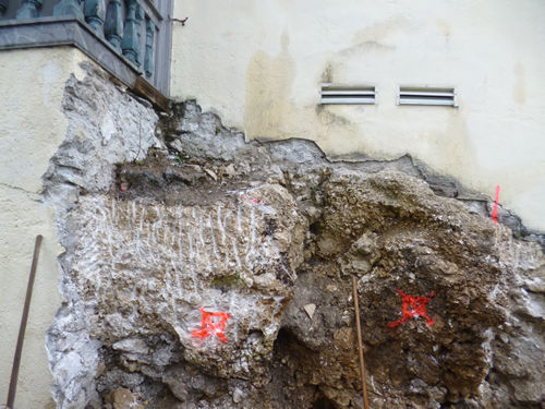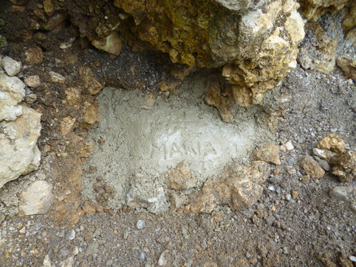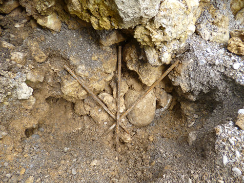 Steinen aus der Höhle zugemauert und zu betoniert. In den glatten Beton