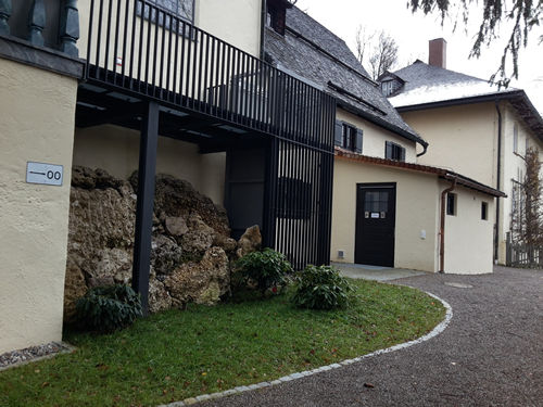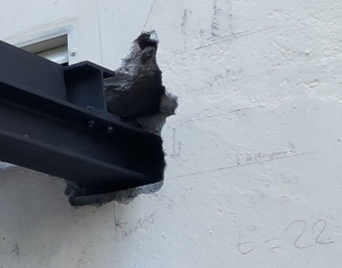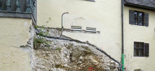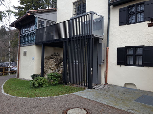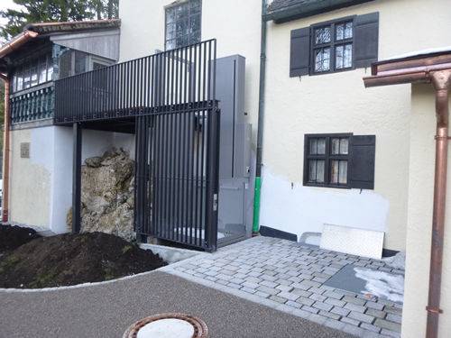 Aufzug weiter von der Wand entfernt, so das vom Felsen nichts mehr abgebrochen