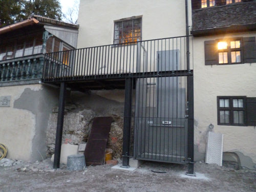 Wochen später - der Bau vom Behinderten Aufzug steht seit geraumer Zeit.