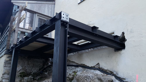 Stahlträgern. Diese Träger stehen noch ein ganzes Stück in